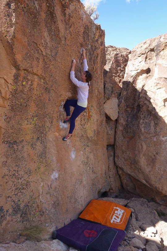 Penny Orr testing the Moon Warrior in Bishop, © Rob Greenwood - UKC