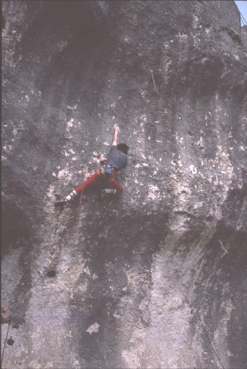I first heard the term on-sight in 1984, on a trip to France with Jerry. The French were impressed by some of his on-sight ascents — climbing a route first try with no prior knowledge — as opposed to a flash, which meant first try with knowledge. Before that, we hadn’t really distinguished between the two, though an on-sight was clearly the greater achievement. Both were highly prized, but the on-sight was the pinnacle. To climb hard on- sights you needed exceptional strength and endurance, but perhaps more importantly, the ability to read the rock and find the most efficient sequence. On trad routes you also needed the skill to place your own protection and keep a cool head. As routes got harder, we took more yo-yos and began dogging moves — working specific sequences. Dogging soon became controversial. If you had the legendary American climber John Bachar belaying, you wouldn’t get the chance — he’d lower you off before you could even try! Some saw dogging as cheating. On that first trip to France in 1984, while the French were working entire routes and then redpointing them, we were still trying to climb ground up. It was a clash of styles and ethics. I think the French saw our yo-yo tactics — falling off, working sections, then leaving ropes clipped — as cheating. Later that year, after returning from France, I bolted what became Statement of Youth. I climbed it ground up, yo-yo style, leaving my ropes clipped at the high point after each attempt. It took five days, and when I finally linked it in one push my ropes were still clipped into the last bolt. Climbing hard routes ground up, with or without knowledge, is incredibly inefficient — which is why, in the mid-80s, we adopted the French redpoint style. Sport climbing in the UK was born. So how does this all relate to trad climbing? As new trad routes became rarer, harder, and more dangerous, first ascensionists began adopting the French approach — and headpointing was born. Headpointing is basically redpointing a trad route: you can practise it as much as you like, but the lead must be a clean ascent from the ground, placing all gear as you go. If you fall, you must pull your ropes and strip the gear before trying again. Ethically, it’s clear- cut, and like redpointing, it allows climbers to push into harder territory.